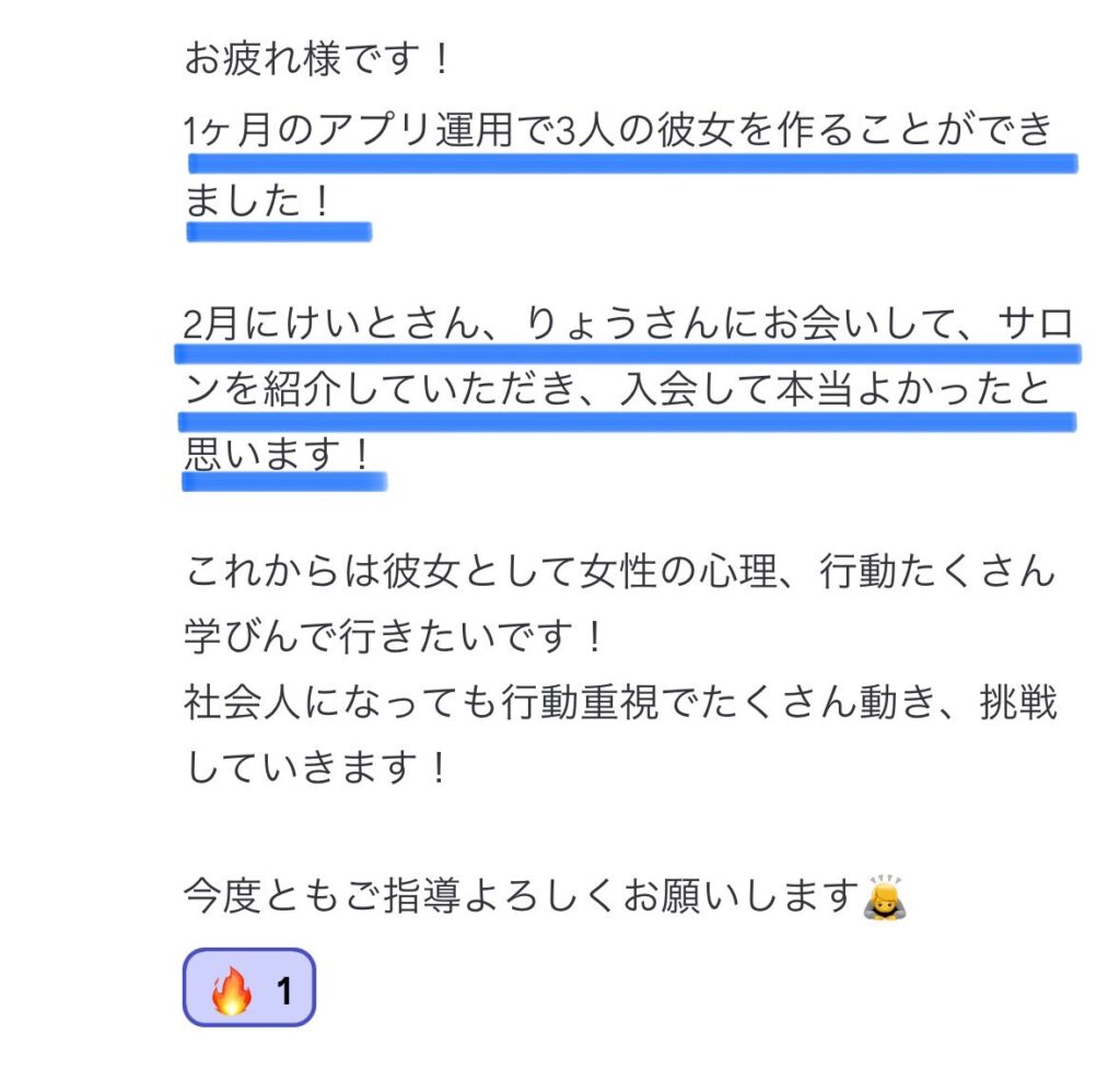 自信なさげだった方が、アプリ・恋愛攻略を通して、活気ある爽やかなナイスガイになる瞬間に沢山立ち会ってきました。