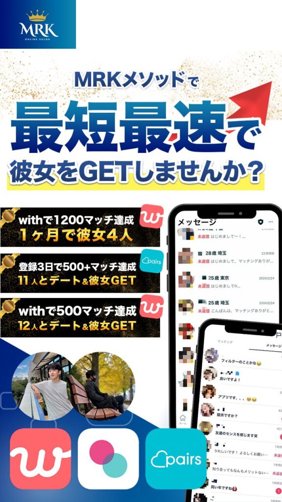 A:はい。MRKメソッドとサロンの環境を活用すれば、アプリで彼女を作ることは難しいことではありません。